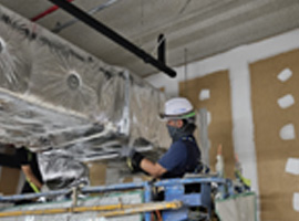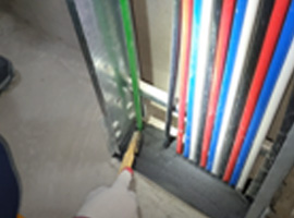 내화보드설치 및 내화실란트 코킹 (바닥 : 차열재, 내화밴드, 내화퍼티 충진)