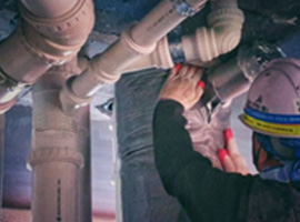 즉, 내화채움공사는 방화구획을 관통하는 모든 설비관통부 (설비는 각종 파이프, 덕트, 케이블트레이)와 조인트 및 커튼월과 바닥 사이 (조인트는 벽체와 벽체의 틈, 창호주위 등을 지칭)를 “내화채움구조 운영지침”에 의해 성능이 확인된 재료 또는 시스템을 적용하여 시공하는 것을 말합니다.