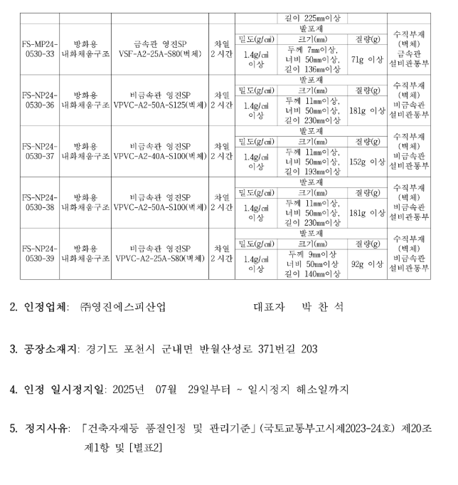 [일시정지] ㈜영진에스피산업(02-498-5532) [금속관 영진SP HSF-65A-S125(바닥) 등 총 12개 구조]