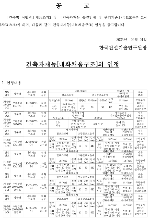 [신규인정] ㈜수달코리아(02-350-0014) [에코씰200MSF+에코폼119(B1) 등 총 2개 구조...