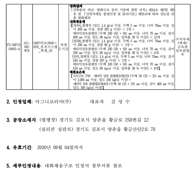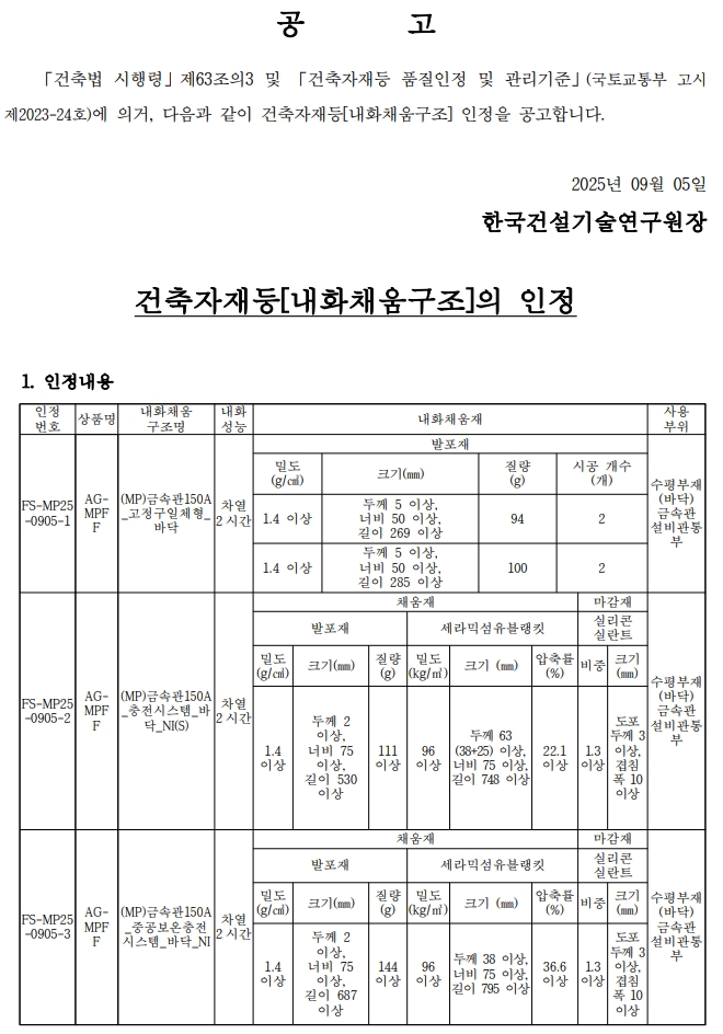 [신규인정] 아그니코리아㈜(031-996-5547) [(MP)금속관150A_고정구일체형_바닥 등 총 4개 구조]